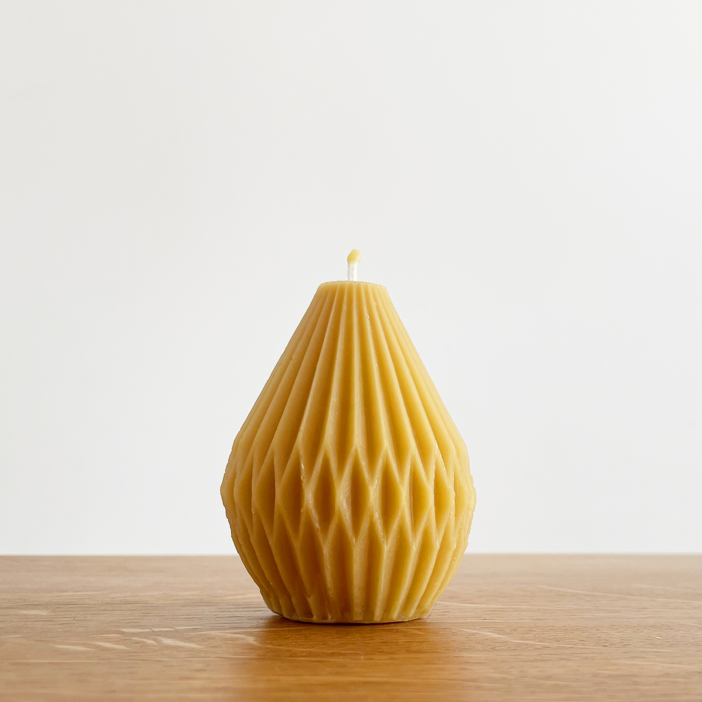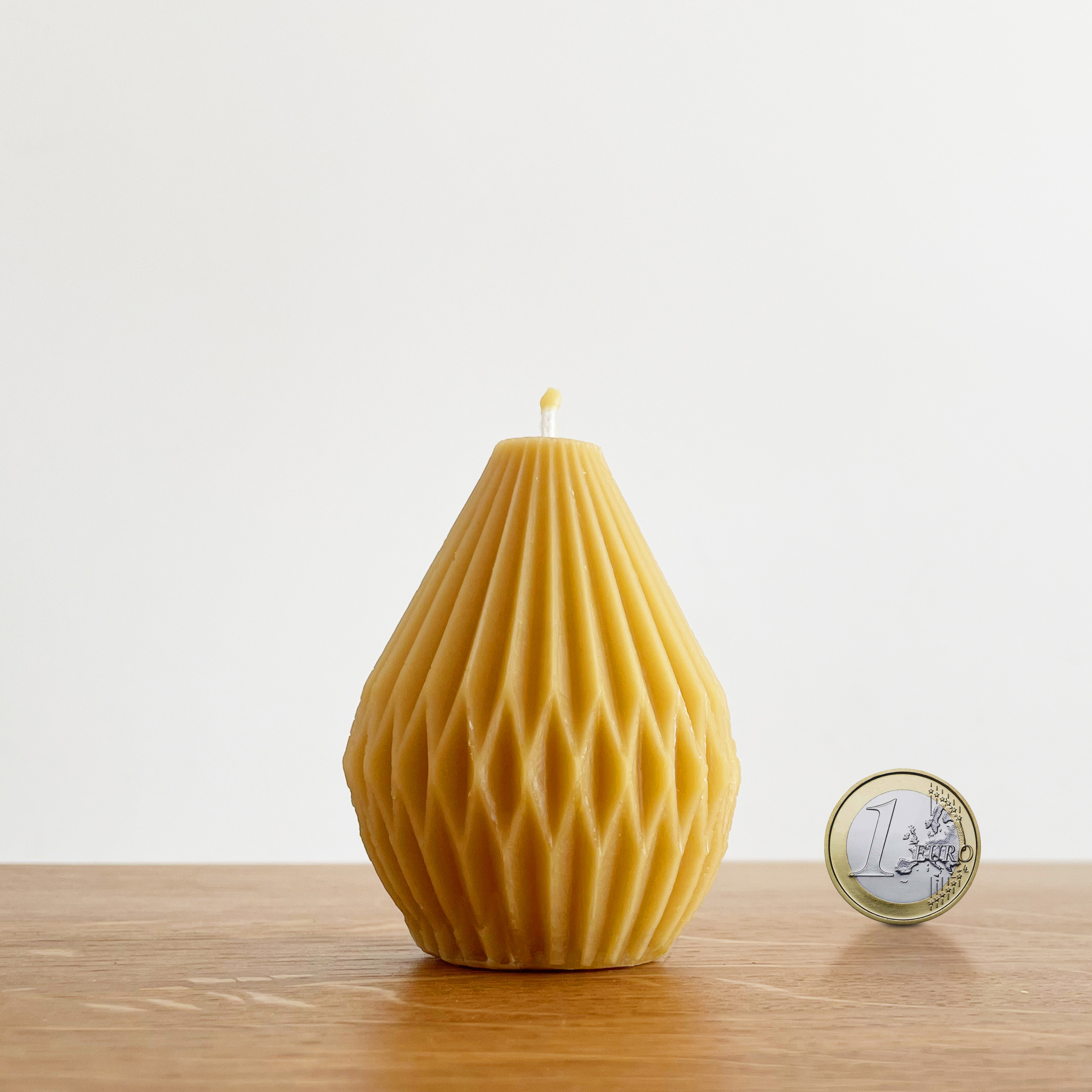 Wunderbar duftende Kerze aus 100% Bienenwachs unserer Völker. Ein echter Hingucker – diese Kerze sieht aus wie ein Origami. Aber ganz ehrlich: Weder wir, noch unsere Bienen können das Wachs so wunderschön falten.
